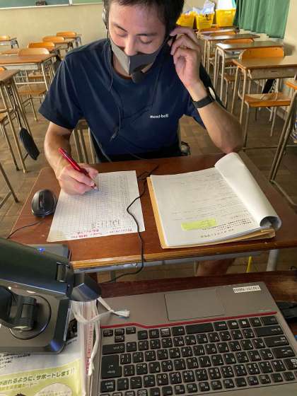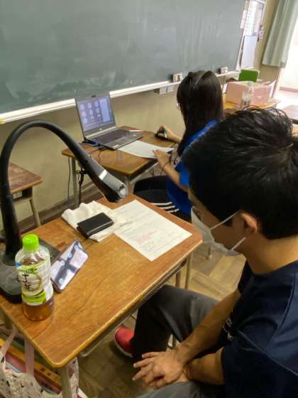 各教室で、全学年各担任から生徒一人ひとりとパソコン画面上でやりとりをし、接続の確認作業を丁寧に行いました。