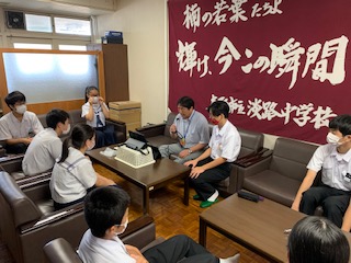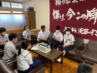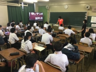 今回の全校集会は、いつもとは違い、初めて校長室からオンラインで中継し、生徒は各教室で全校集会に参加しました。