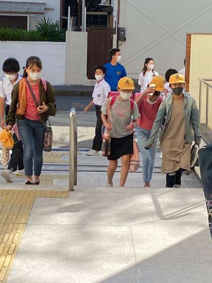 今日の金曜日は、朝から「 小中一貫 須賀の森学園 大阪市立西淡路小学校 」6年生徒が元気に淡路中学校に登校です。