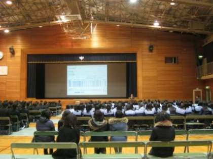 映像を交えお話いただきました    保護者の方もご参加いただきました