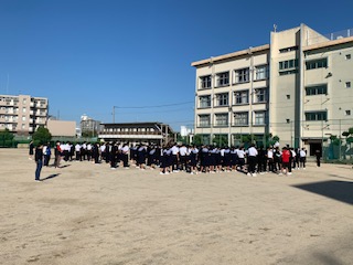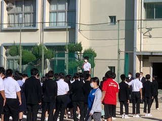 続いて校長先生から、先週の台風が直撃することなくすんでよかったと言うお話の一方で、今後まだ台風が続いたり、気候の変化が大きいので自身の安全を守ることや体調管理に気をつけましょうとお話がありました。