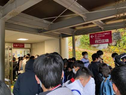 ロープウェイ乗り場のしらび平に到着。これから1000m7分の空中散歩です。
