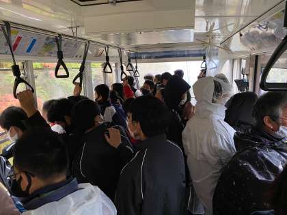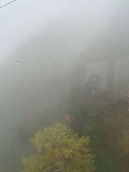 紅葉に見惚れていると、あっという間に雲の中ヘ、雲海を抜けたらそこは白銀の世界でした。