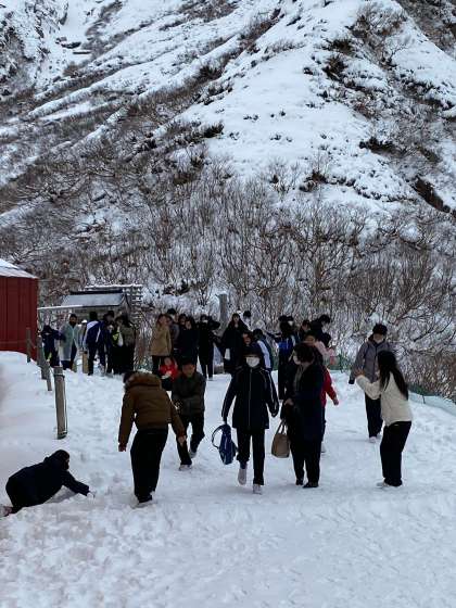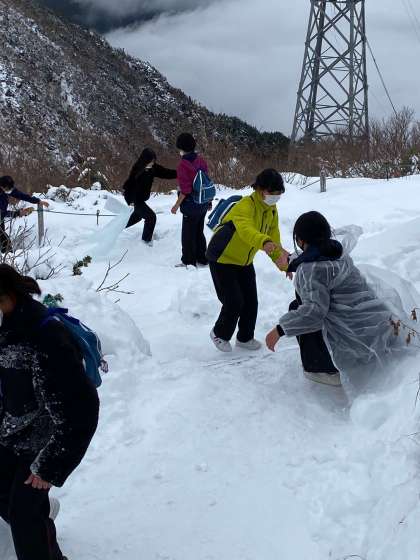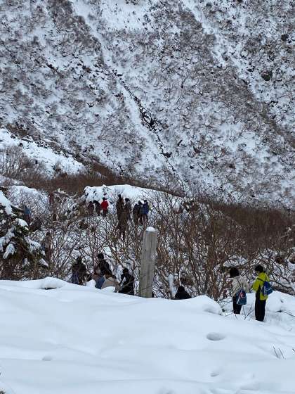 記念写真が終われば、トレッキングに雪遊び。