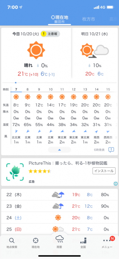 今日の朝の空模様は曇りですが、徐々に回復し、飯田市は晴れの予報。