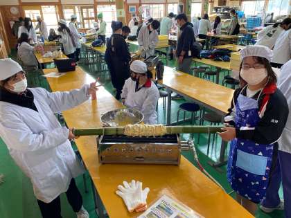 同じ三和観光農園でバームクーヘン作りもりんご組と同じ工房で体験します。
