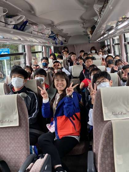 バスに乗り込み、一路長島スパーランドへ2時間半のドライブ!