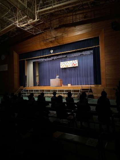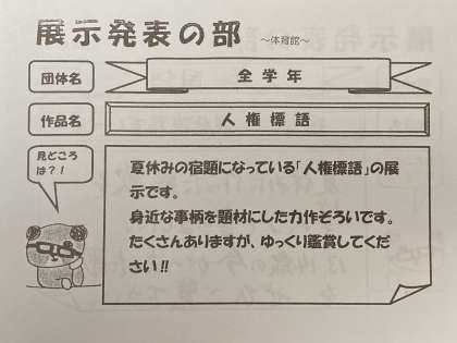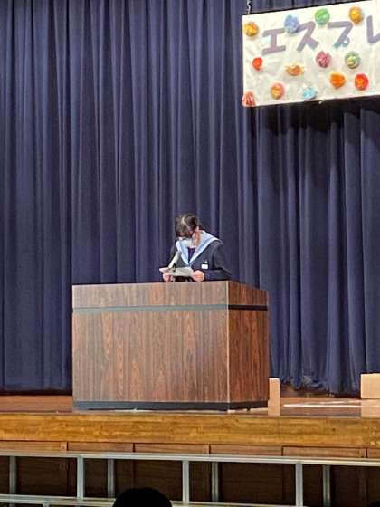 第2学年の学年発表に続いて、人権作文の朗読です。2年2組 大森真帆さんが『ひとつの個性』という自らの作文を朗読しました。