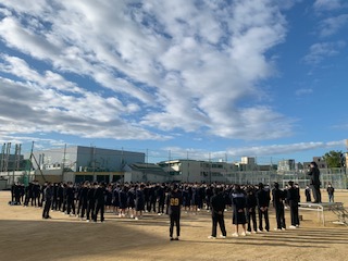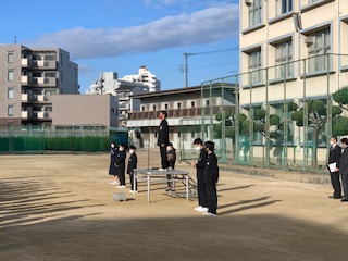 まずは生徒会長からもうすぐ期末テストがあるので、それに向けて頑張りましょうとお話がありました。