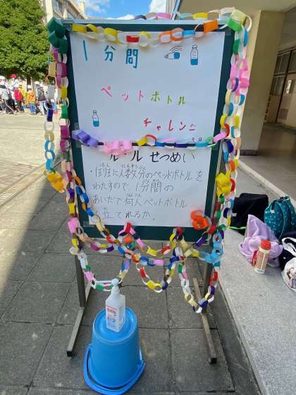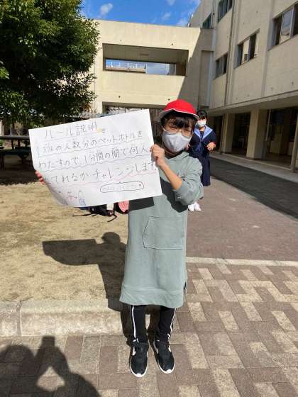 画像は『1分間ペットボトルチャレンジ』の様子。