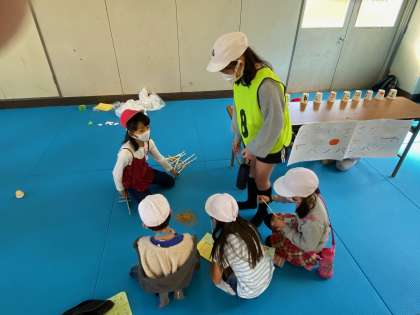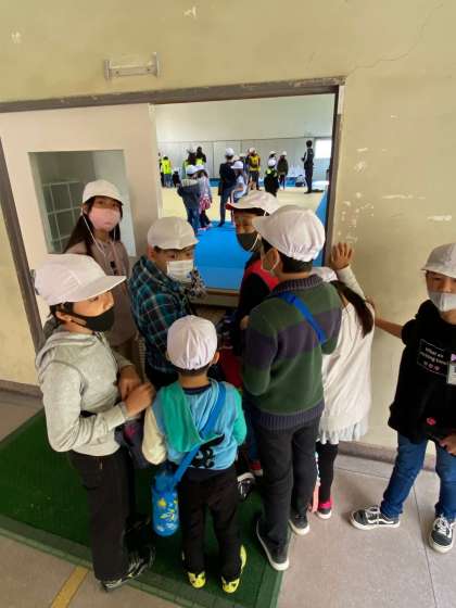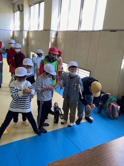 画像は、格技室で行われていた『ねらいをさだめてバンバンバン』の様子です。きちっと6年生がリードして班の規律を守らせていました。