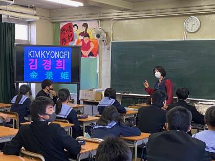 先週の11日から、本校では国際理解教育の一環として、毎年恒例の民族講師が終学活に各クラス毎で交流を図る『ソムセンニム交流』ご始まりました。