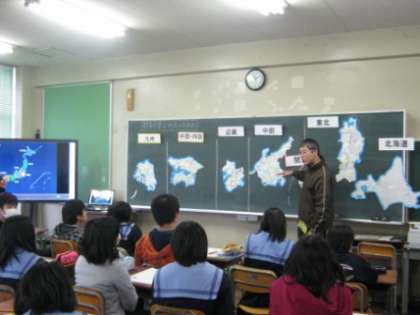 <上から> 社会科(日本の都道府県の学習)・英語科(ビンゴゲームなどアルファベットを使った学習)・美術科(絵の具を使って「色相環」の学習)