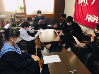 校長懇話会とは生徒会のメンバーが、学校を良くしていくためにざっくばらんに、校長先生と意見交流をする活動です。