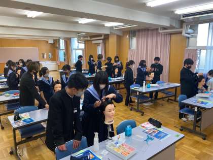 『美容』の講座は、小出美容専門学校さんが来てくれました。
