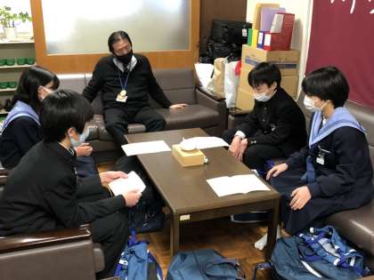 1年学年生徒会が1月22日の放課後、校長室で校長先生もオブザーバーとして参加する中行われています。