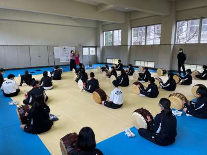本校では、3年間をかけて韓国朝鮮について学習します。1年生は「友好」をテーマに伝統楽器の演奏や遊びを体験し、「外国の文化を学ぶことで、ちがいを知り、尊重できるようになる」ことを目標としています。