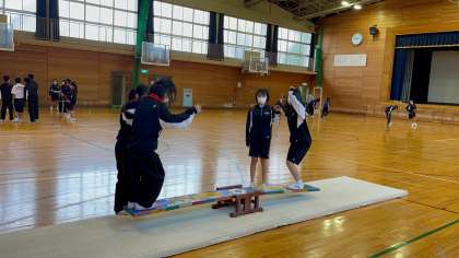 伝統の遊び体験では、シーソーのような遊びの「ノルティギ」、コマ回しの「ペンイ」、蹴鞠(けまり)やリフティングのような「チェギチャギ」、矢を2mほど離れた壺の中に投げ入れる「トゥホ」を体験しました。