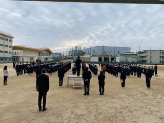 校長先生からは、新型コロナウィルス感染の緊急事態宣言について、大阪を含め全体としてはここ数日、新規陽性者は減少傾向にあるが、政府としては緊急事態宣言の延長も検討されているのはなぜか、何が緊急事態なのか、単に新規陽性者数に一喜一憂するのではなく、適切な医療が受けれない状況にあることが、緊急事態であることの認識を持つことなど、何事もその背景にあるものをしっかりと見定めることの大切さを話されました。