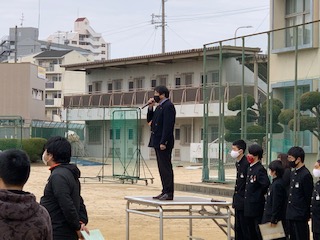 最後に生徒指導主事の西野先生から、この間の学校施設の破損状況に触れ、きれいで快適な学校の環境を守ろうとお話がありました。