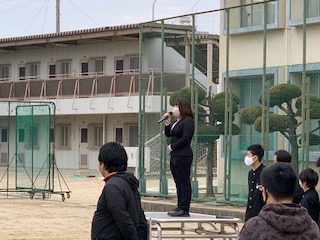 続いて校長先生から、今日から新しく特別支援サポーターとして赴任された小川真矢先生が紹介され、自己紹介のスピーチがありました。