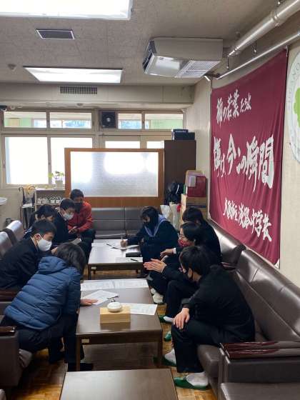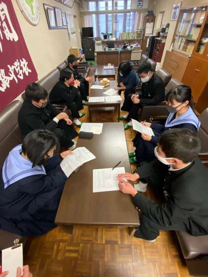 いつもは2年学習室で行われてきましたが、今回から校長室で校長先生もオブザーバー参加で行います。