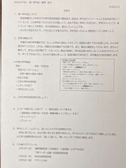 2日火曜日の放課後、校長室で1年生に続いて2年生の学年生徒会議がありました。