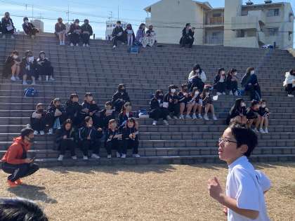 男子は女子より1km多い4kmマラソンです。部活の威信をかけてゴールをめざす者、クラスの期待を一身に背負い駆け抜ける者、マイペースに完走をめざす者、三者三様ですがスタート地点での大声援に後押しされて、何故かスピードが上がるのは微笑ましく、しょうがない事ですね。