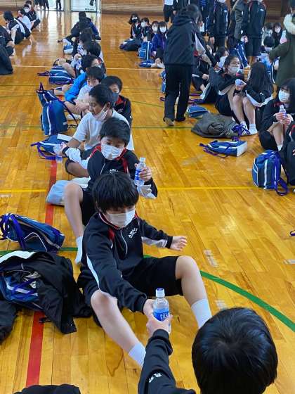 その後帰校し、体育館でPTAからのスポーツドリンクの差し入れで給水。