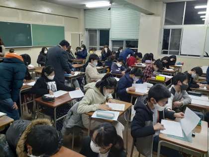 2月10日水曜日、4月から始まる「こぶしみのり塾」の体験授業が19時00分からと20時20分からの2回行われました。淡路中学生が1/3、今年入学する現小学校6年生が2/3の割合で体験しました。