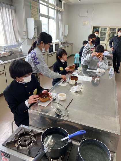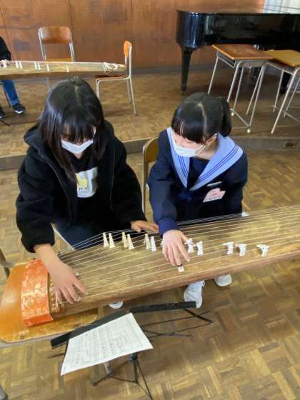 画像は図書室での国語の輪読、音楽室での琴の演奏、家庭室でのコーヒーや味噌汁調理とテイスティングです。
