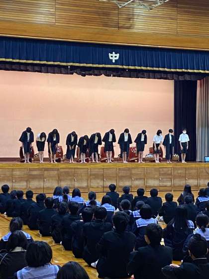 先月2月18日の1時間目に全校生徒が体育館で仲間の日の生徒集会を行いました。