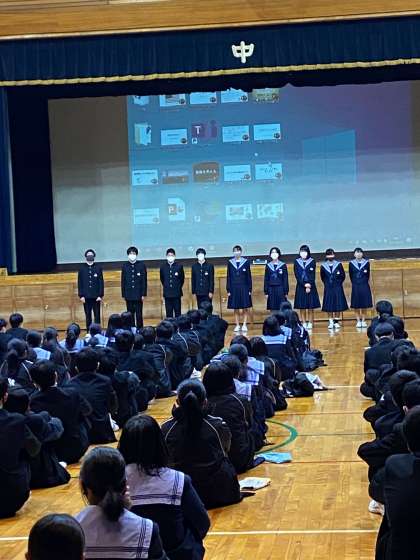 文化部から運動部まで、全ての部活動の部長が集まって、月1回部活動の在り方や活動課題を話し合っています。