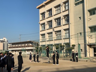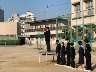 先週の木曜日に行われた「仲間の日」を振り返り、部活動部長会議から提案・呼びかけのあった「大阪一の挨拶をしよう!」について、お話がありました。