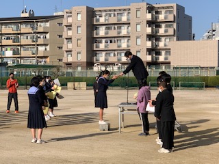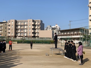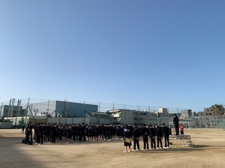 本日、定例の3月最初の全校集会が春を感じさせる陽気の中、行われました。