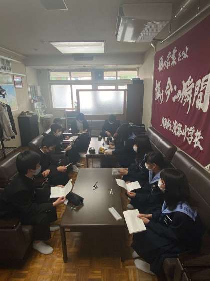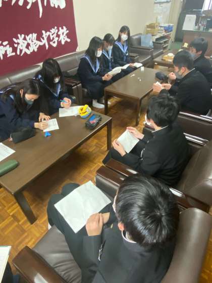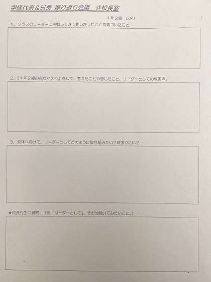 先週の金曜日に、1年2組の本年度最後の班長会議を校長室で行いました。