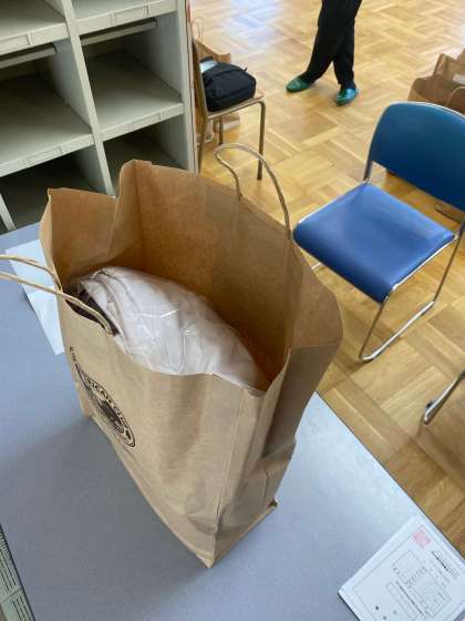 児童から生徒へ、大きな紙袋に入った中学生活に必要な様々なグッズ。