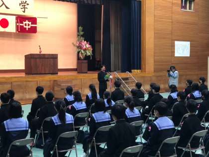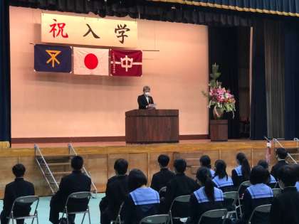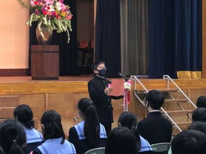 画像はPTA会長の森川様よりの式辞、生徒会長からの歓迎の言葉、新入生代表の誓いの言葉と続きます。