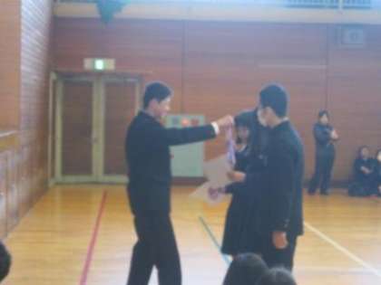 体育の授業で取り組まれた「長距離走」について、好タイムを記録した生徒に賞状が贈られました。