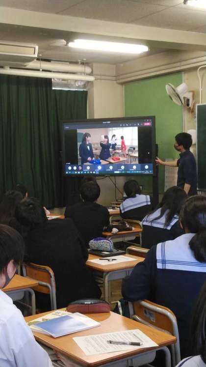 その後、『いじめを考える』取り組みを各教室で、各教室と校長室をTeamsアプリを使いオンラインでつないで、学習しました。