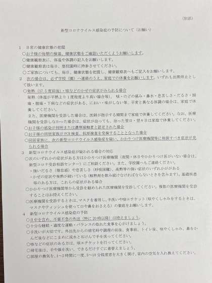 画像の1と2は、本日の保護者宛のお手紙です。各ご家庭でもご確認ください。