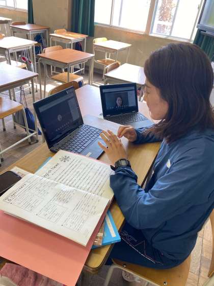 画像の3はオンラインでの2年双方向英語の授業風景です。