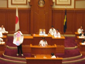 本校からは3人が議員として参加しました。そのうち3年生の2人が、議員の代表として、演台に立ち落ち着いて堂々と発表してくれました。