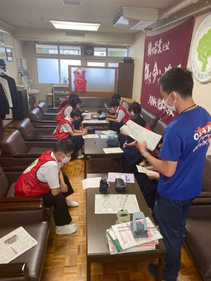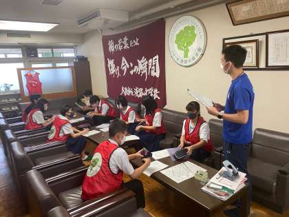 ちなみに会議で各部長が着ている赤いレガースは、地域清掃をはじめ地域貢献活動をする時に着用する為に制作した物です。