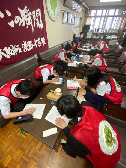淡路中生徒がこの赤いレガースを着て活動をしている所を地域で見かけられたら、是非あたたかい声かけを宜しくお願いします。