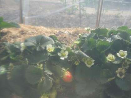 イチゴが実っています レタスの栽培中