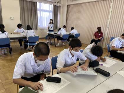 まだまだ、考えは浅いように感じましたが、いろいろな人の意見を聞いて真剣に考え、良い方向に変えていくことは必要なことです。次回はもう少し具体的に話し合う予定です。自分たちのために、淡路中学校の後輩のために、活発な意見交換の場になるよう、期待しています。