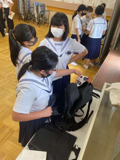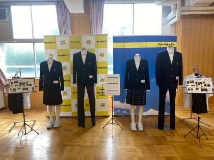 生徒は午前中登校し、授業を受けると共に、制服・通学カバンの内覧会に参加しました。