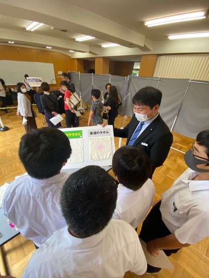 当日は、沢山の保護者が内覧会に参加してくれました。生徒たちと一緒に業者のプレゼンに耳を傾けていました。