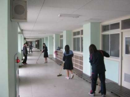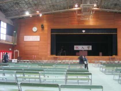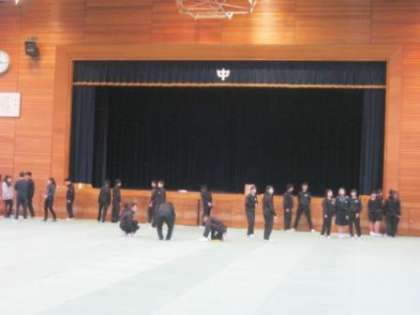 明日の入学式・始業式にむけて、在校生(新2,3年)が登校し式場設営を行いました。